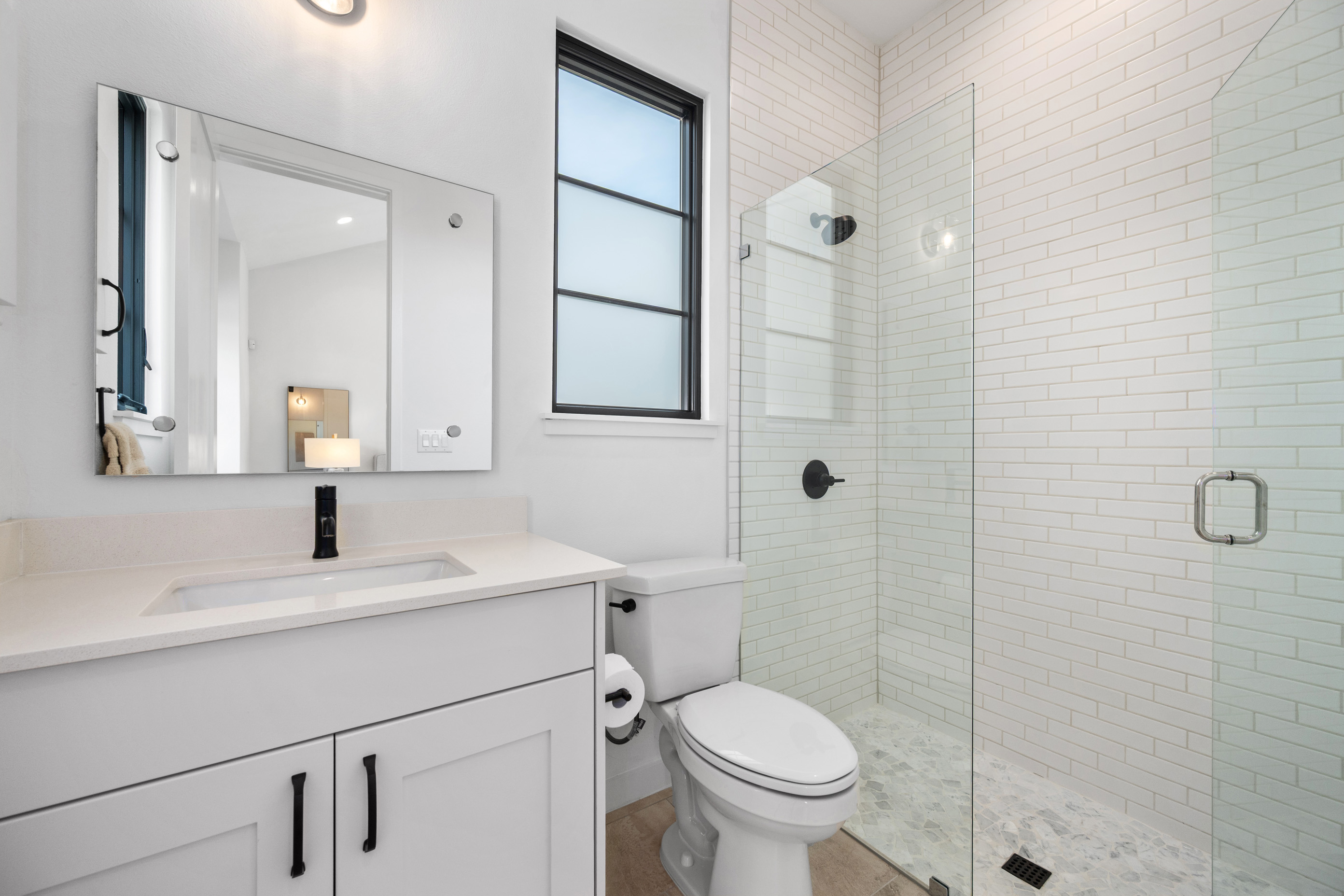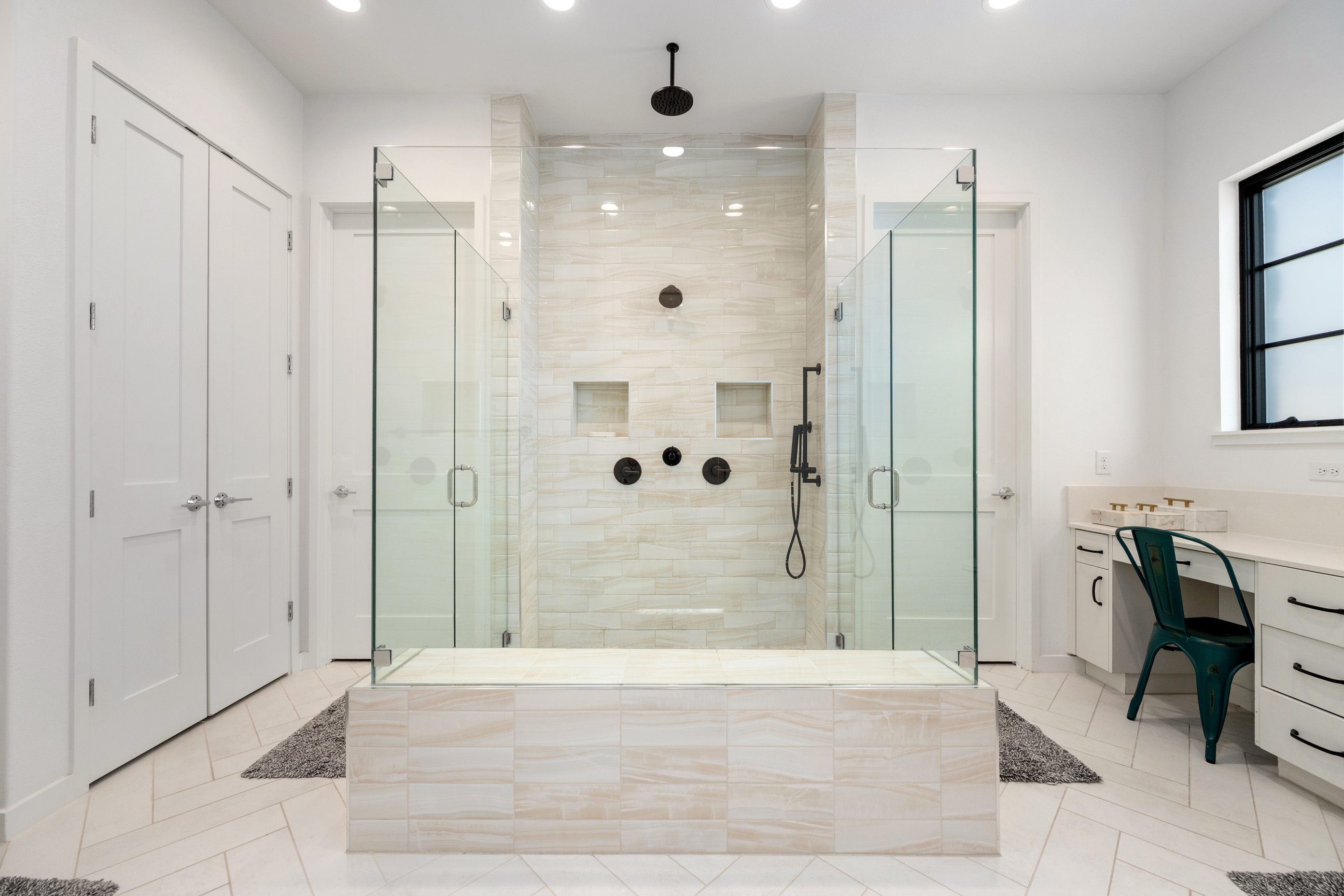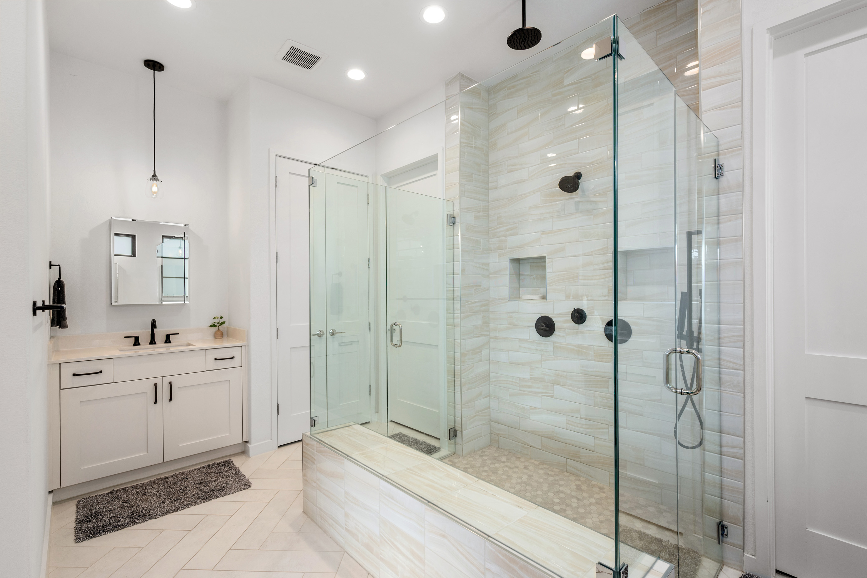 • Spa-inspired bath with oversized frameless glass walk-in shower