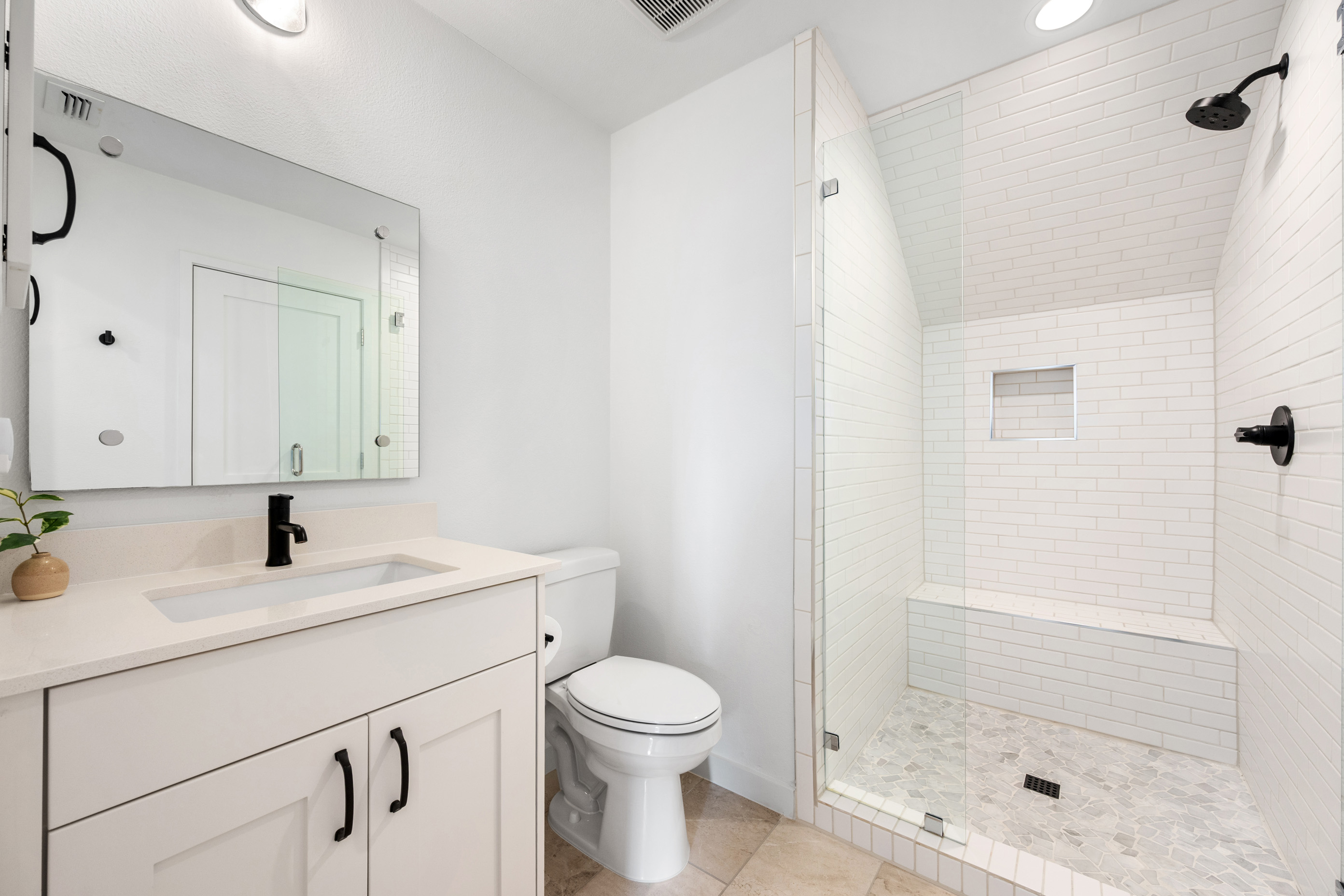 • Spa-inspired bath with oversized frameless glass walk-in shower