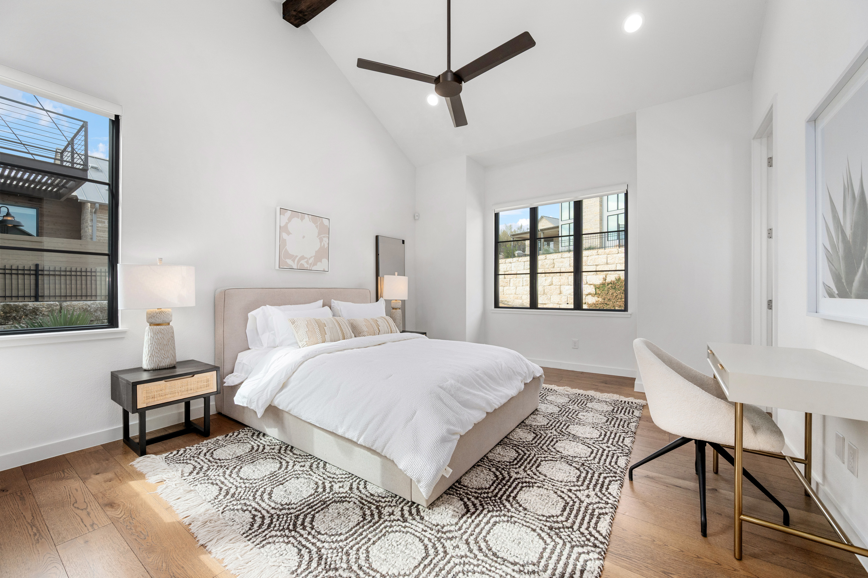 • Private primary suite with beamed ceiling and peaceful backyard views